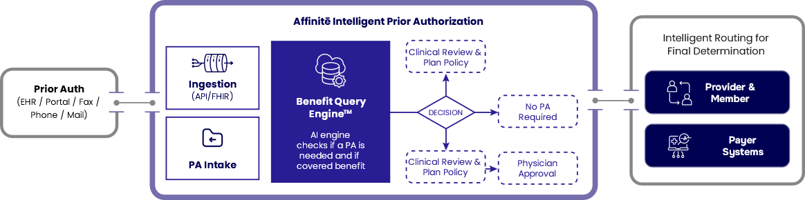 Health plans today face growing complexity in managing benefit variations, authorizations, and regulatory requirements. The Affinitē UM Dynamic Benefit Query Module, powered by our first-of-its-kind Benefit Query Engine™ (BQE), transforms this process through intelligent automation and real-time insights – reducing friction for users and providers alike.